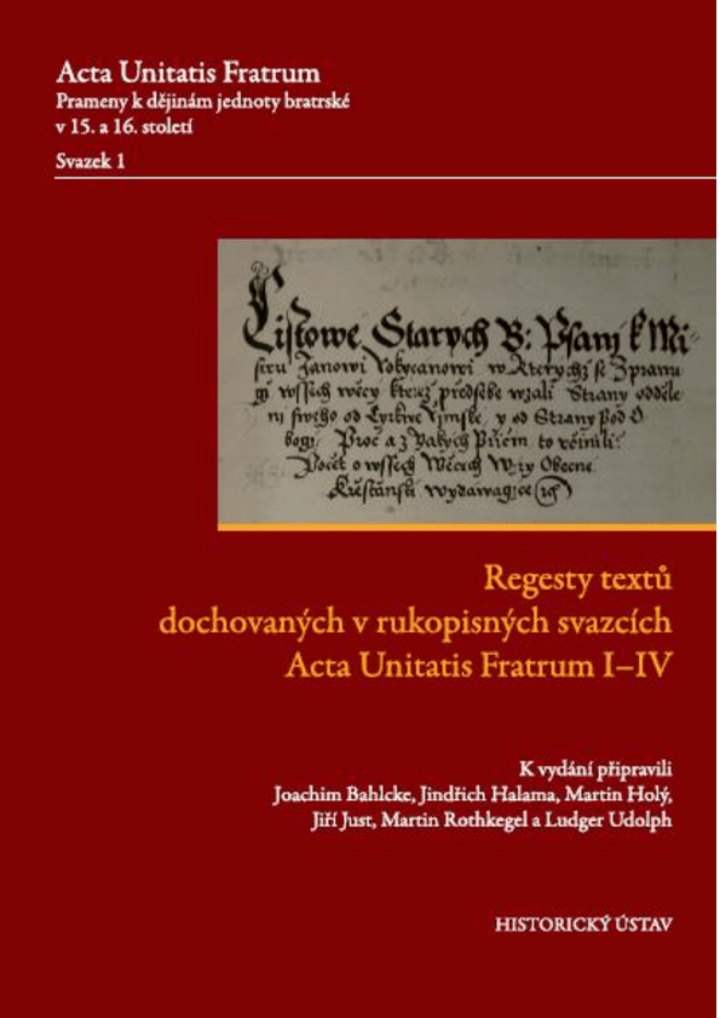 Acta Unitatis Fratrum. Regesty textů dochovaných v rukopisných svazcích Acta Unitatis Fratrum I–IV.